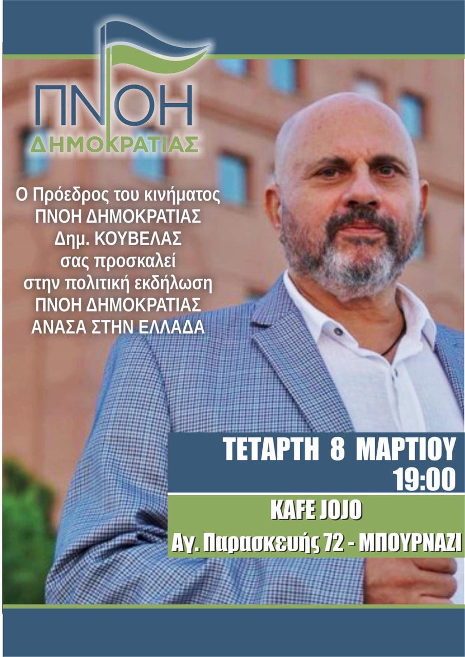 Ο Πρόεδρος του κινήματος Πνοή Δημοκρατίας ΔΗΜΗΤΡΗΣ ΚΟΥΒΕΛΑΣ σας προσκαλεί στην πολιτική εκδήλωση ΠΝΟΗ ΔΗΜΟΚΡΑΤΙΑΣ, ΑΝΑΣΑ ΣΤΗΝ ΕΛΛΑΔΑ. Τετάρτη 8 […]
