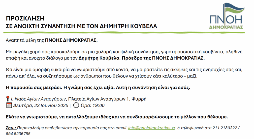 Πρόσκληση σε Ανοιχτή Συνάντηση με τον Δημήτρη Κούβελα